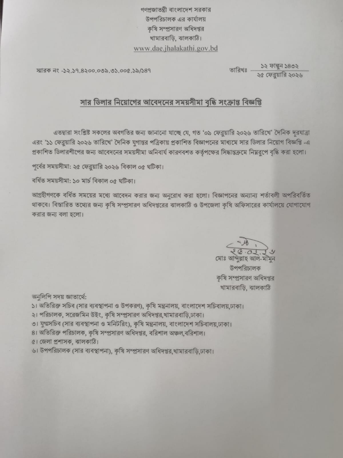 কন্টেন্ট: নোটিশ প্রকাশের তারিখ: ২৫-০২-২০২৬ আর্কাইভ তারিখ: ৩১-০৩-২০২৬